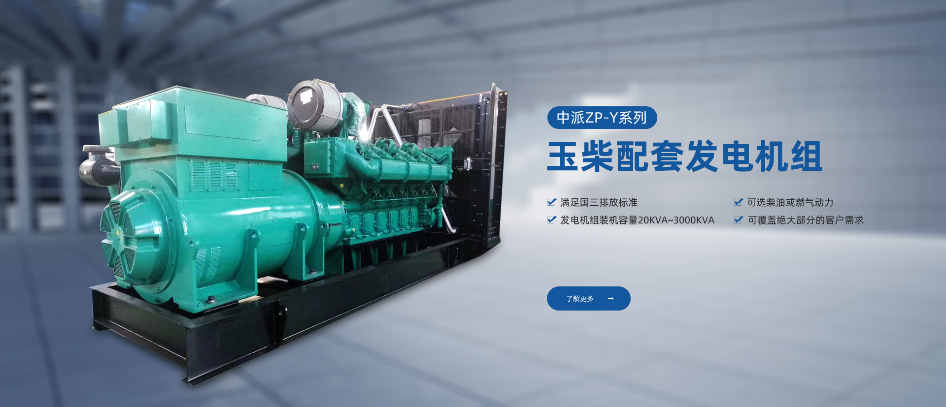 產(chǎn)品特點:中派ZP-Y系列玉柴發(fā)電機組系列機組采用廣西玉柴機器股份有限公司生產(chǎn)的YC系列發(fā)動機,滿足國三排放標準,可選柴油或燃氣動力,發(fā)電機組裝機容量20KVA~3000KVA,可覆蓋絕大部分的客戶需求。